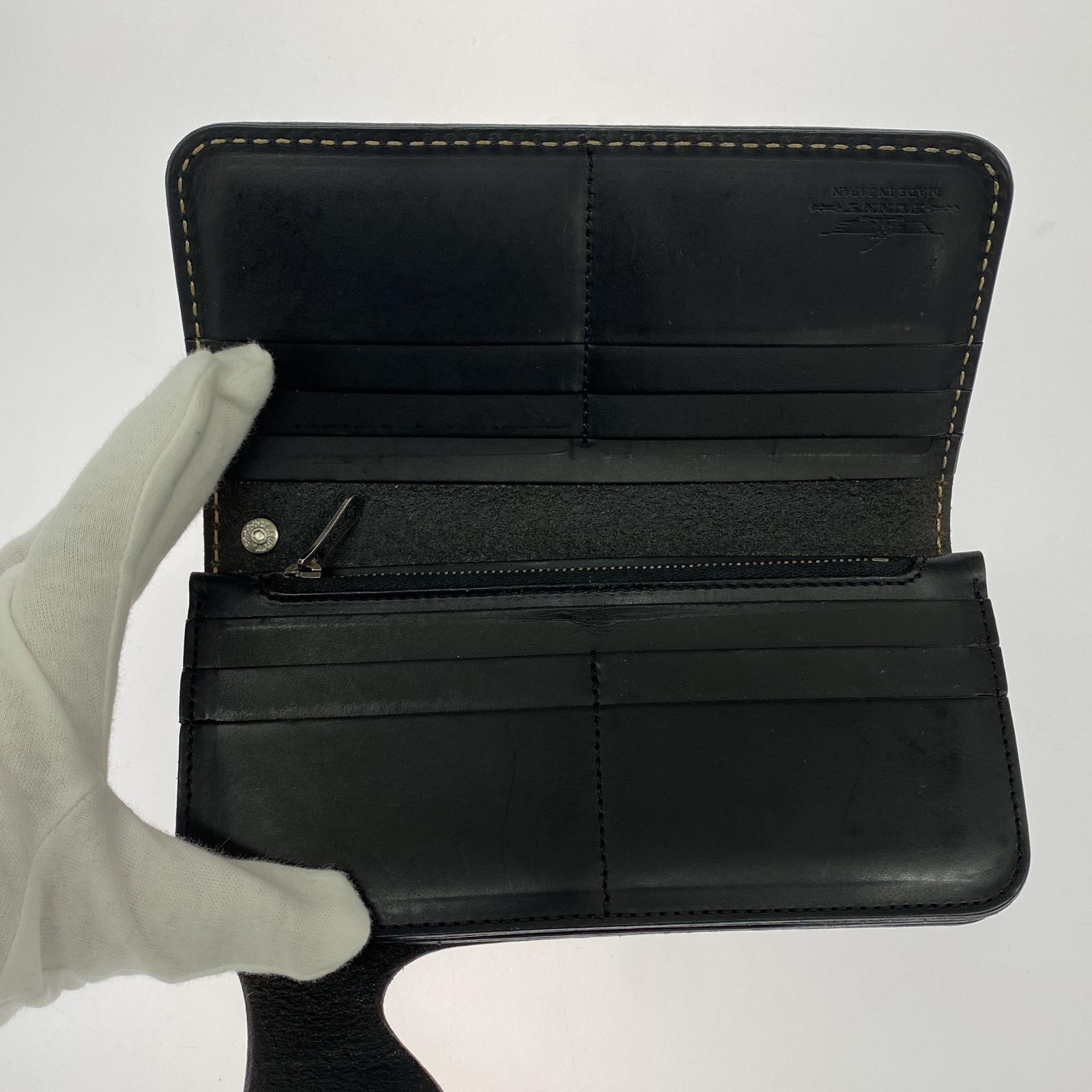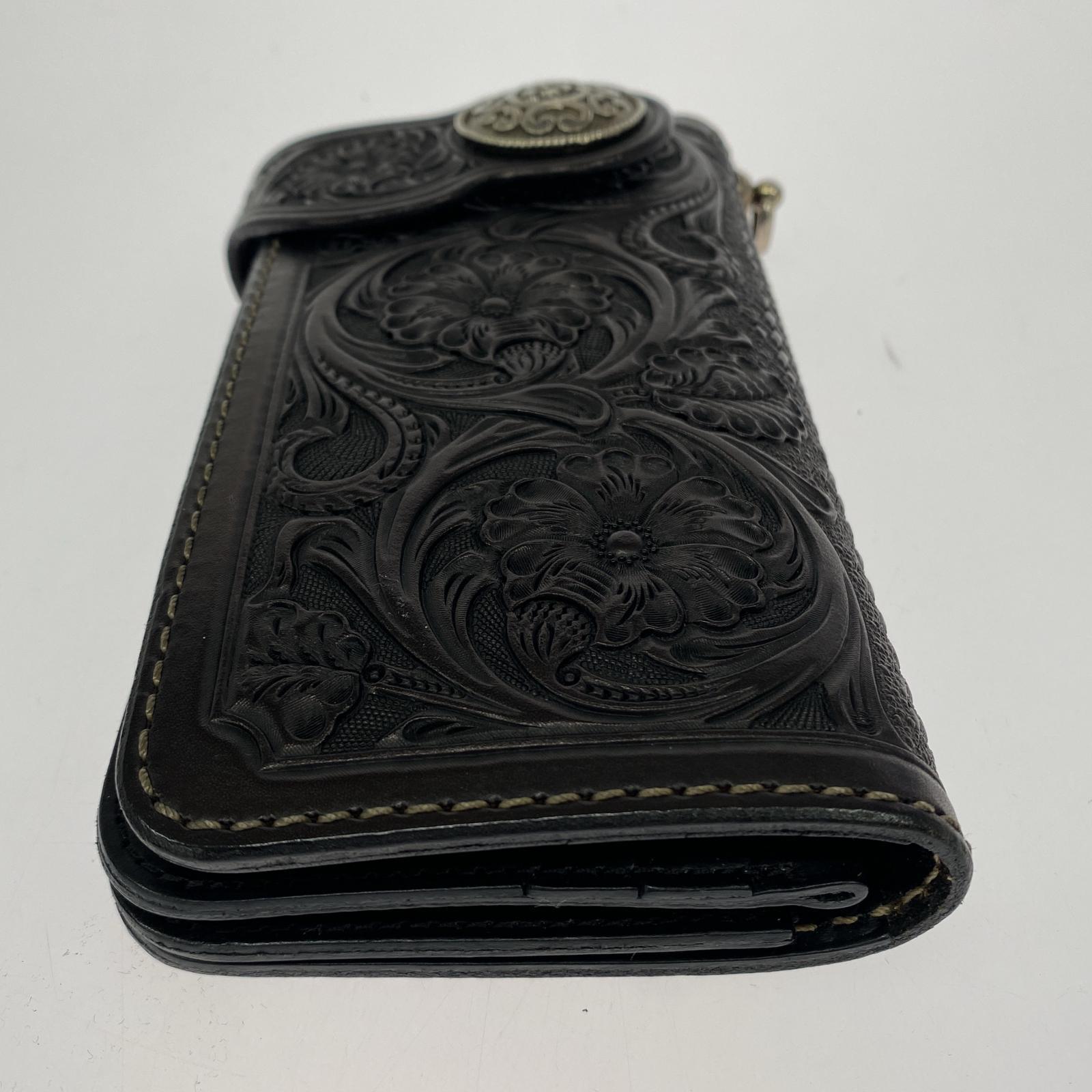. 長財布 FUNNY カービングレザー チェーン付キライダースウォレット 黒