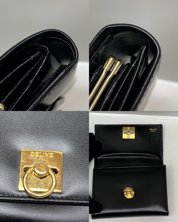 CELINE オールドセリーヌ ガンチーニ 3つ折り財布 BLK 本体のみ セリーヌ OLD CELINE 財布 コンパクトウォレット がま口