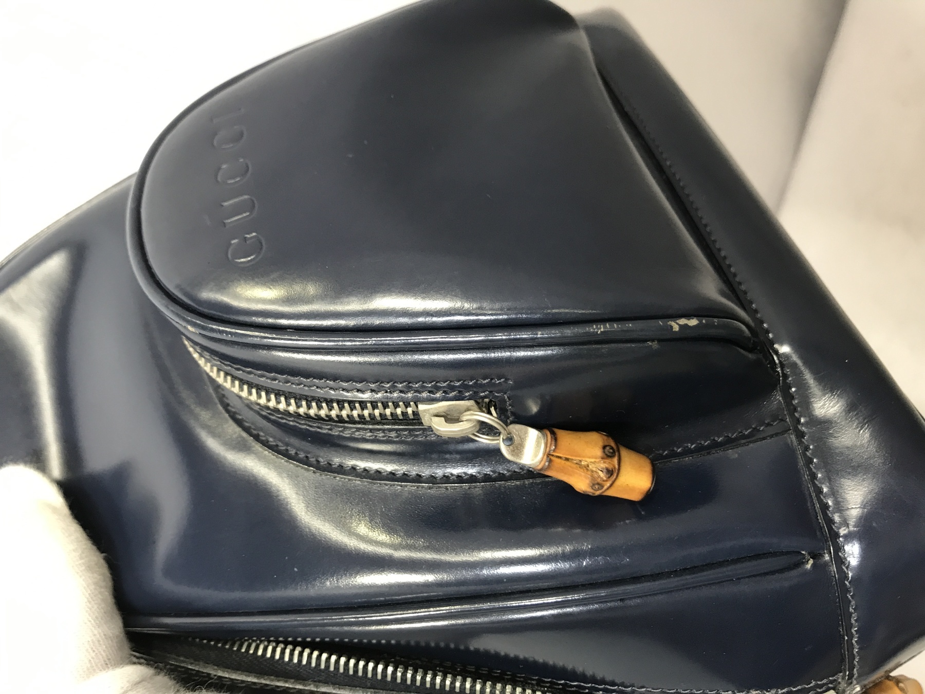 ショルダーバッグ ワンショルダー バンブー エナメル ネイビー