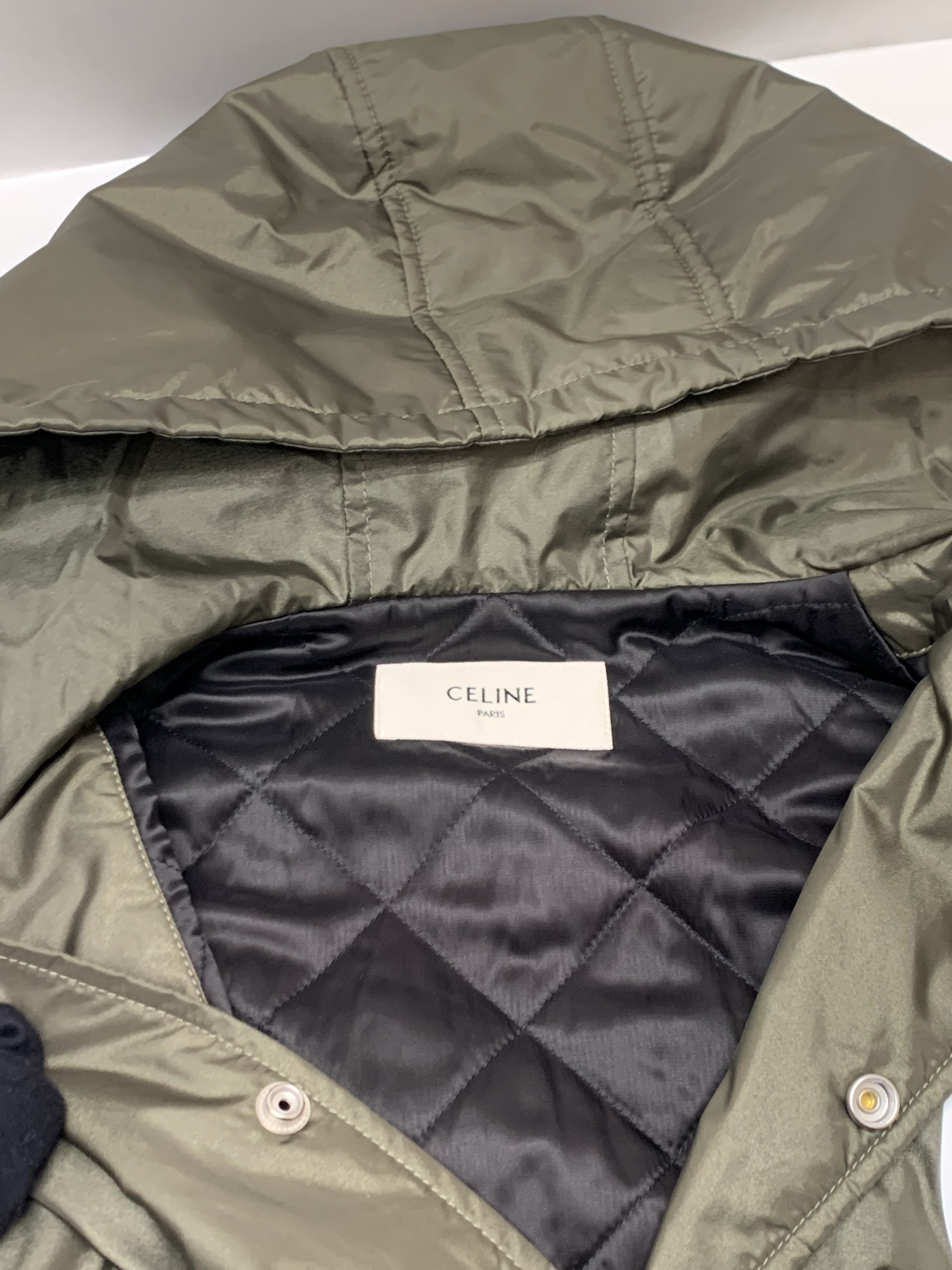 CELINE フーデッド コーチジャケット Size46 カーキ 本体のみ セリーヌ パーカー フード ナイロンジャケット オリーブグリーン