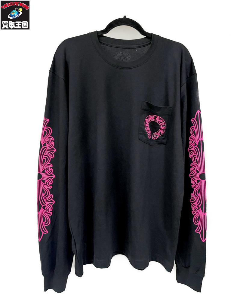 CHROME HEARTS 25AW PINK Horseshoe L/S Tee 袖フローラル バックホースシュー XL 黒×ピンク[値下]