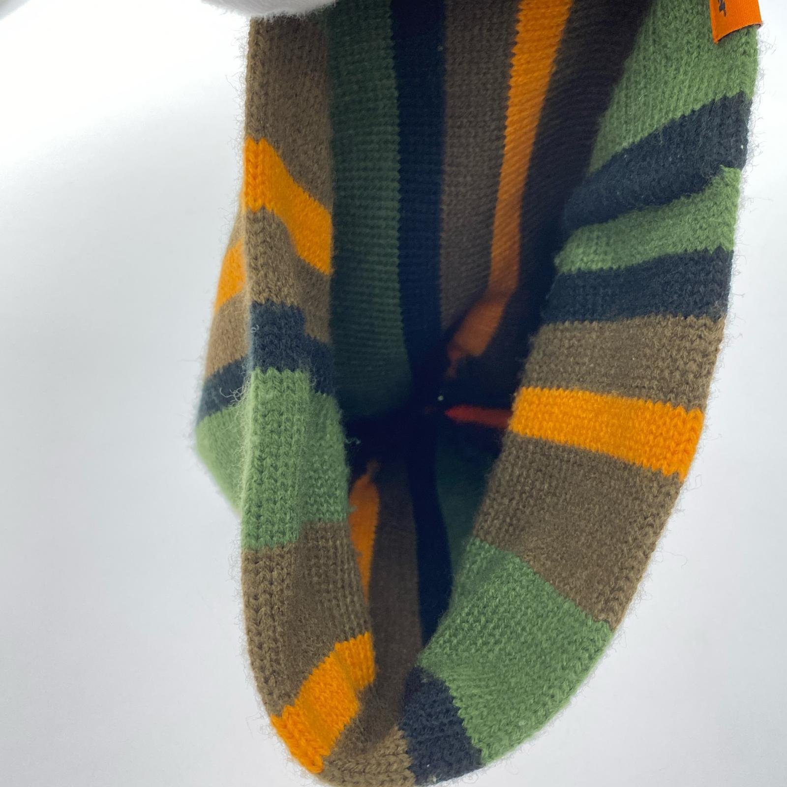 . ニットキャップ ストライプ ビーニー カーキ