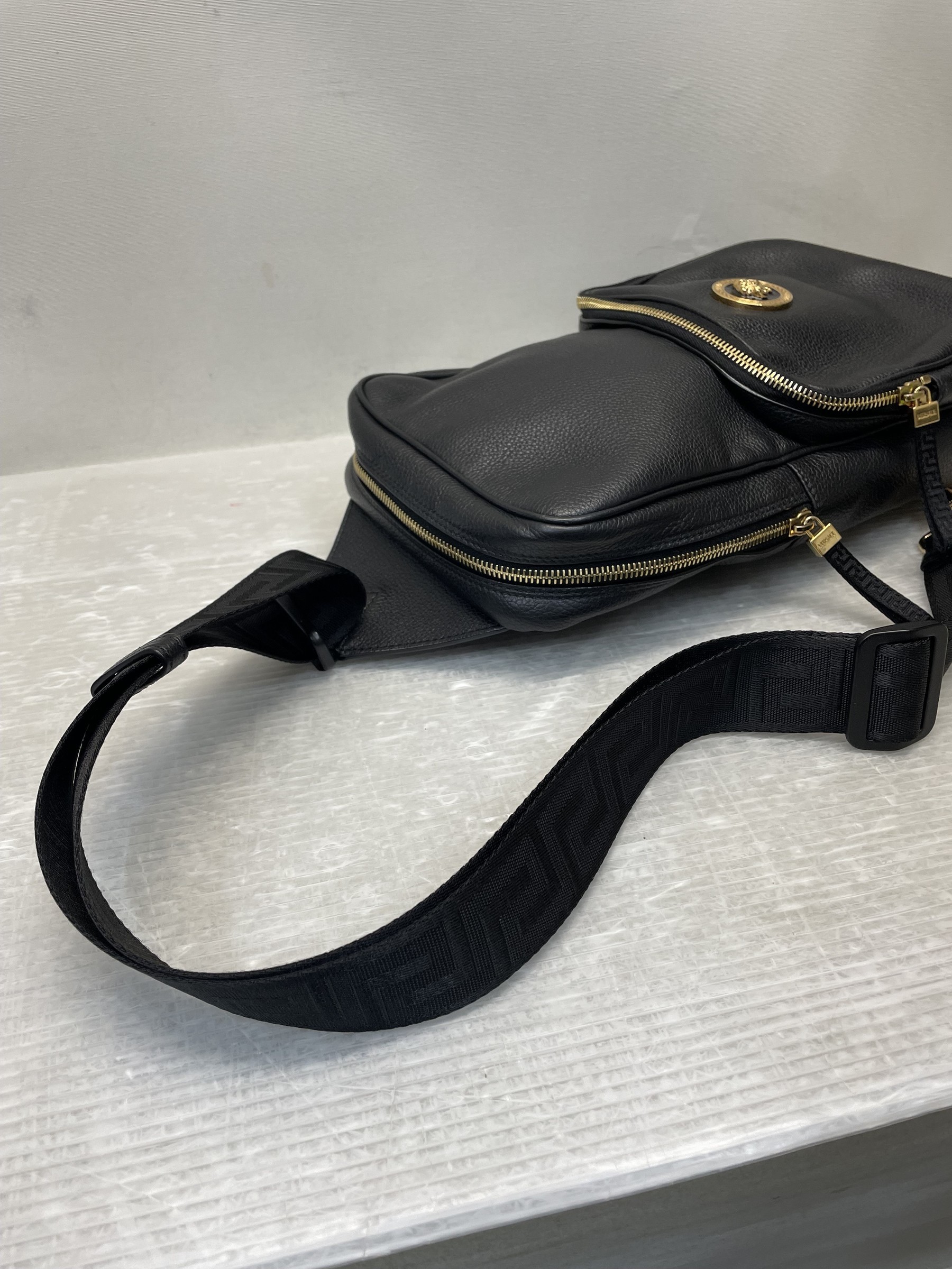 VERSACE メドゥーサ レザースリングバッグ ブラック