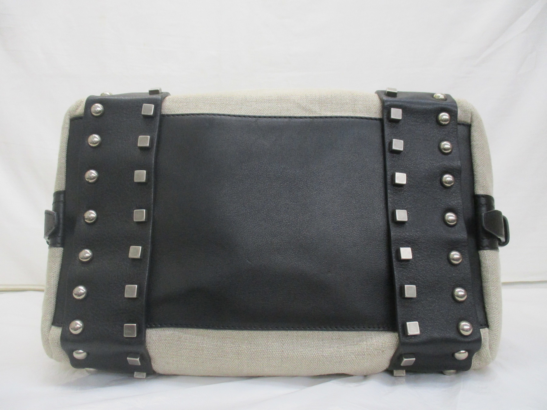 CELINE スタッズ キャンバス/レザー ボストンバッグ 黒
