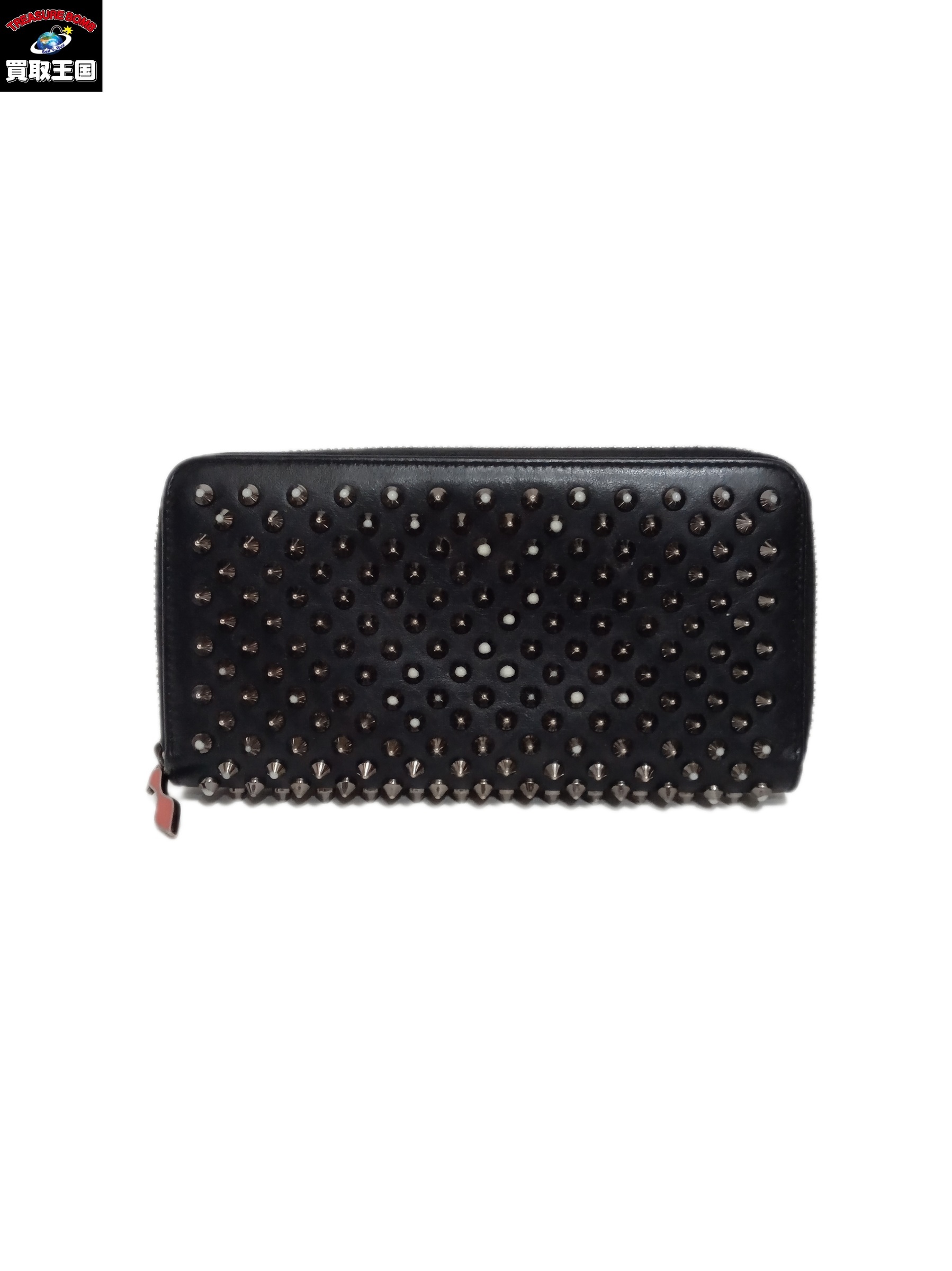 長財布 C.Louboutin スタッズラウンドファスナー長財布 黒