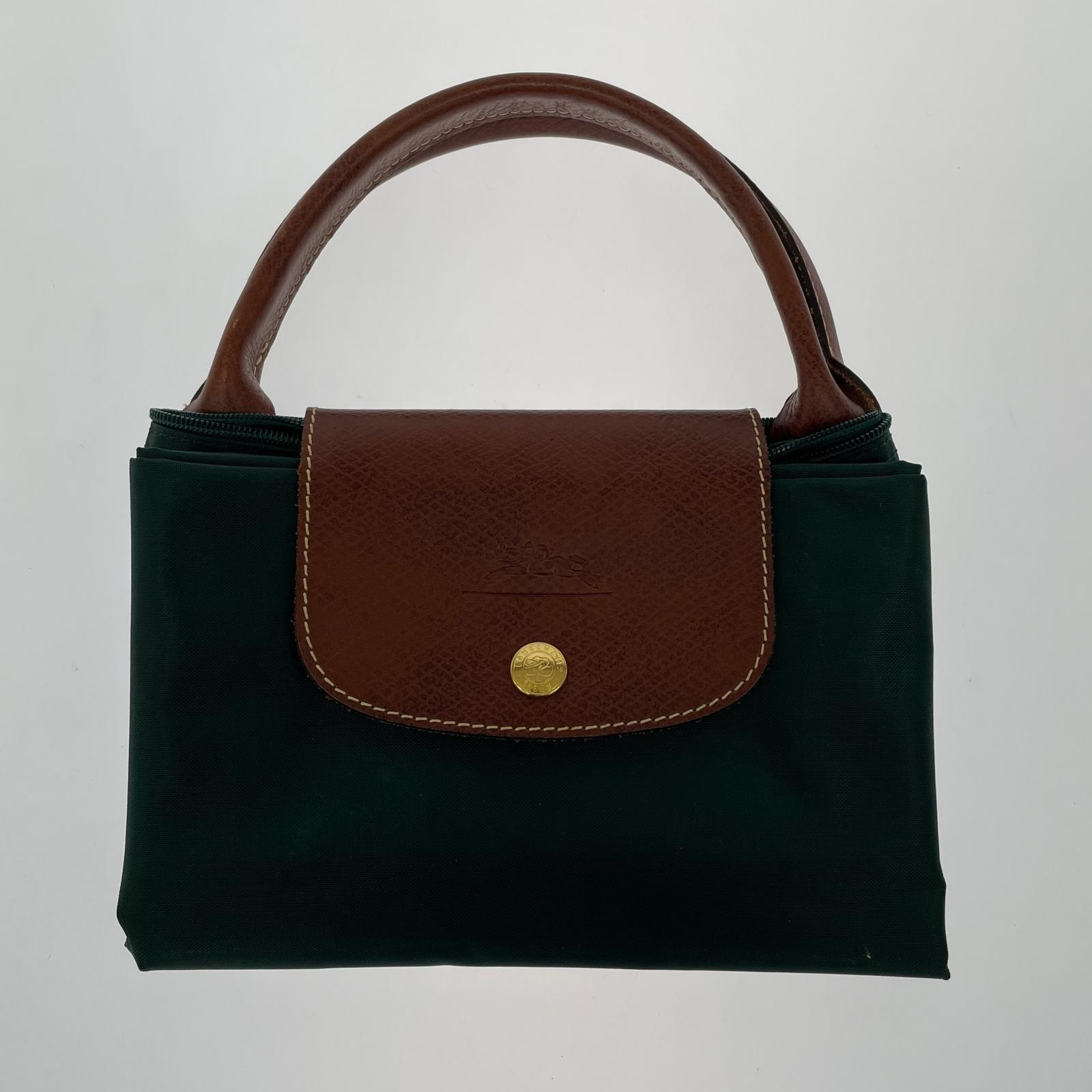 LONGCHAMP プリアージュ ナイロン レザー 緑 (M)