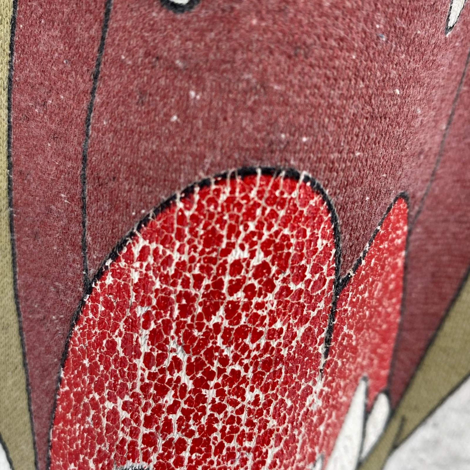 ■状態:全体的に毛玉あり。首まわり・両袖口・後身頃に汚れあり。プリント部分にひび割れあり。
