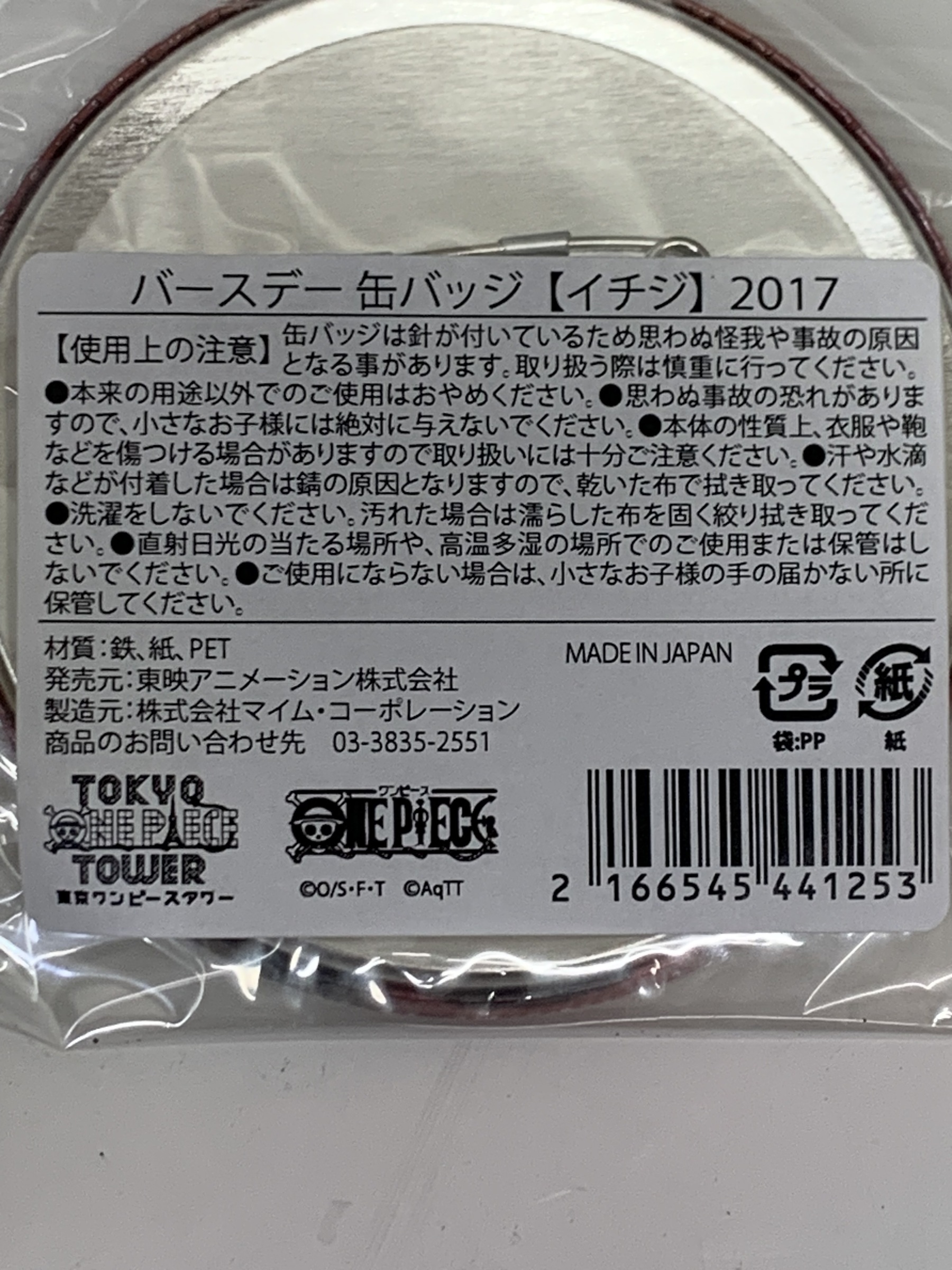 ワンピース ヴィンスモーク・イチジ バースデイ記念缶バッジ 2017 未開封 ONE PIECE 麦わらストア 東京ワンピースタワー店限定 BD缶バッジ ヴィンスモーク家
