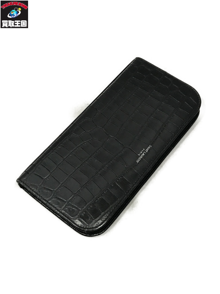 長財布 クロコレザー ロングウォレット ブラック