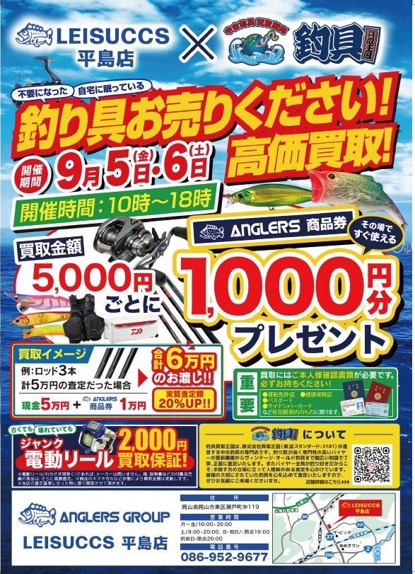 釣具 【お知らせ】催事買取イベント開催 レジャックス 平島店様 釣具 2025.08.31 釣具買取王国本部です催事買取イベントのお知らせです!9/5、6日にレジャックス 平島様での開催になります! 初の岡山開催という事でどんな釣具をお持ち込みいただけるか楽しみにしております岡山の皆様、是非ともよろしくお願いたします!