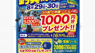 釣具買取王国本部です催事買取イベントのお知らせです!8/28、29日に上州屋 金沢金石店様での開催になります!北陸エリアでは2度目の催事買取イベントになります石川の皆様、是非ともよろしくお願いたします!